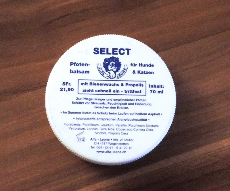 SELECT® Pfotenbalsam zur Pflege rissiger und empfindlicher Pfoten. Schützt vor Streusalz, Feuchtigkeit und Eisbildung zwischen den Krallen.